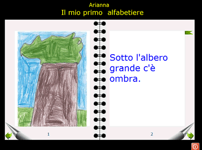 La classe prima ha invece costruito un Alfabetiere: per ciascuna lettera dell’alfabeto, i bambini hanno disegnato un oggetto o un animale che iniziasse con quella lettera. I disegni sono stati scansionati e inseriti nel libro con una piccola frase contenente la parola scelta. Ciascuno ha poi personalizzato il proprio libro con una copertina originale.